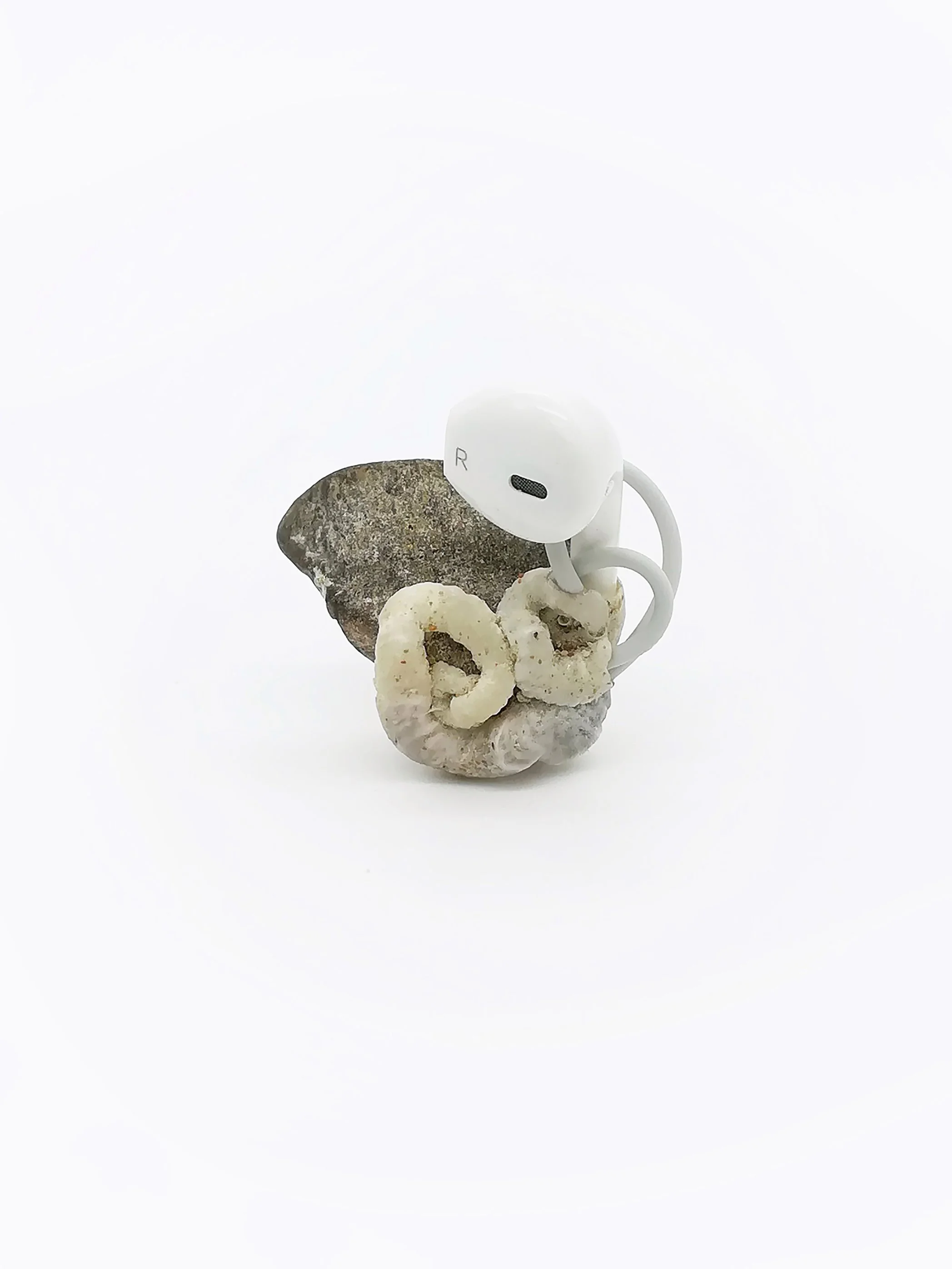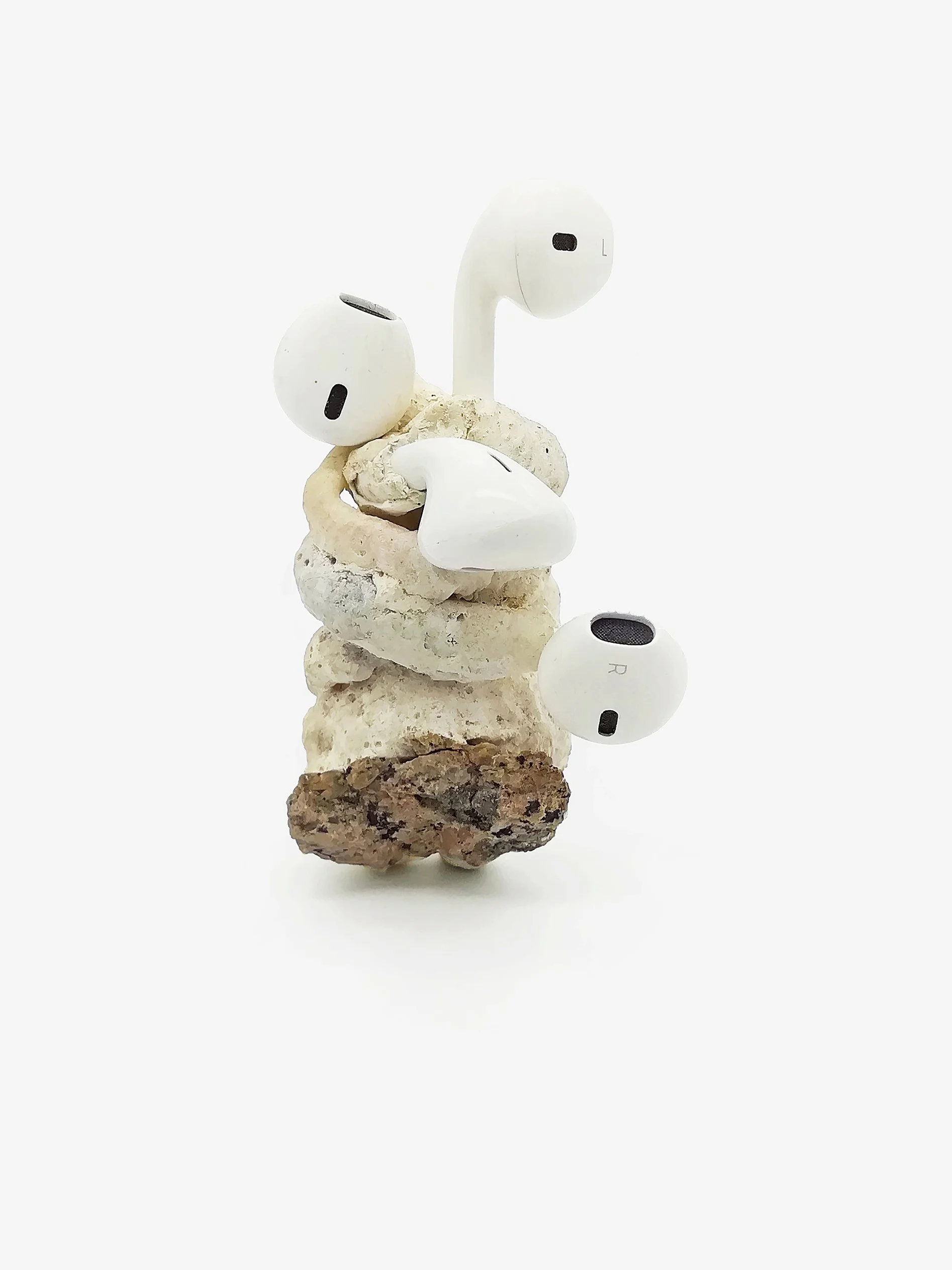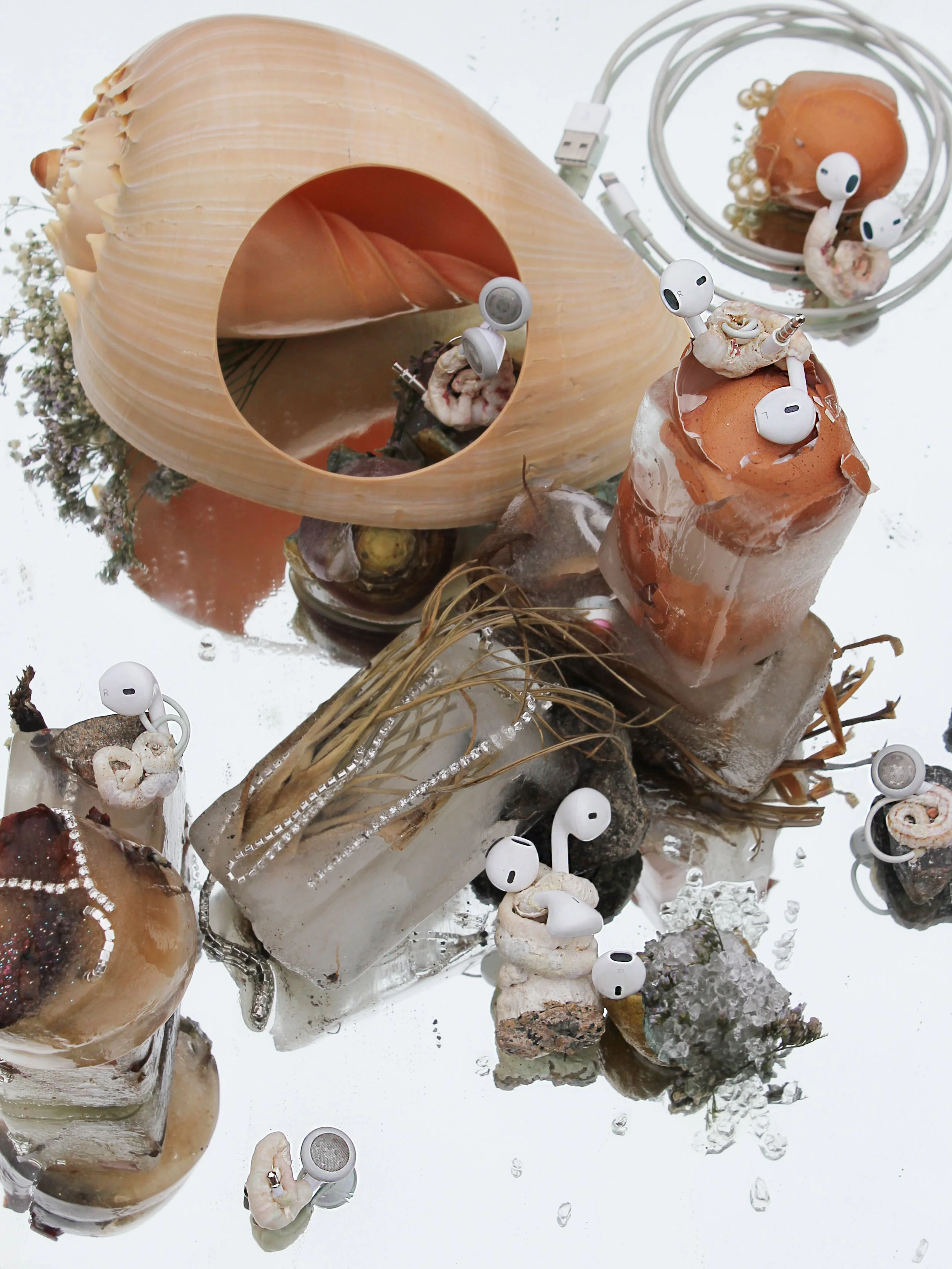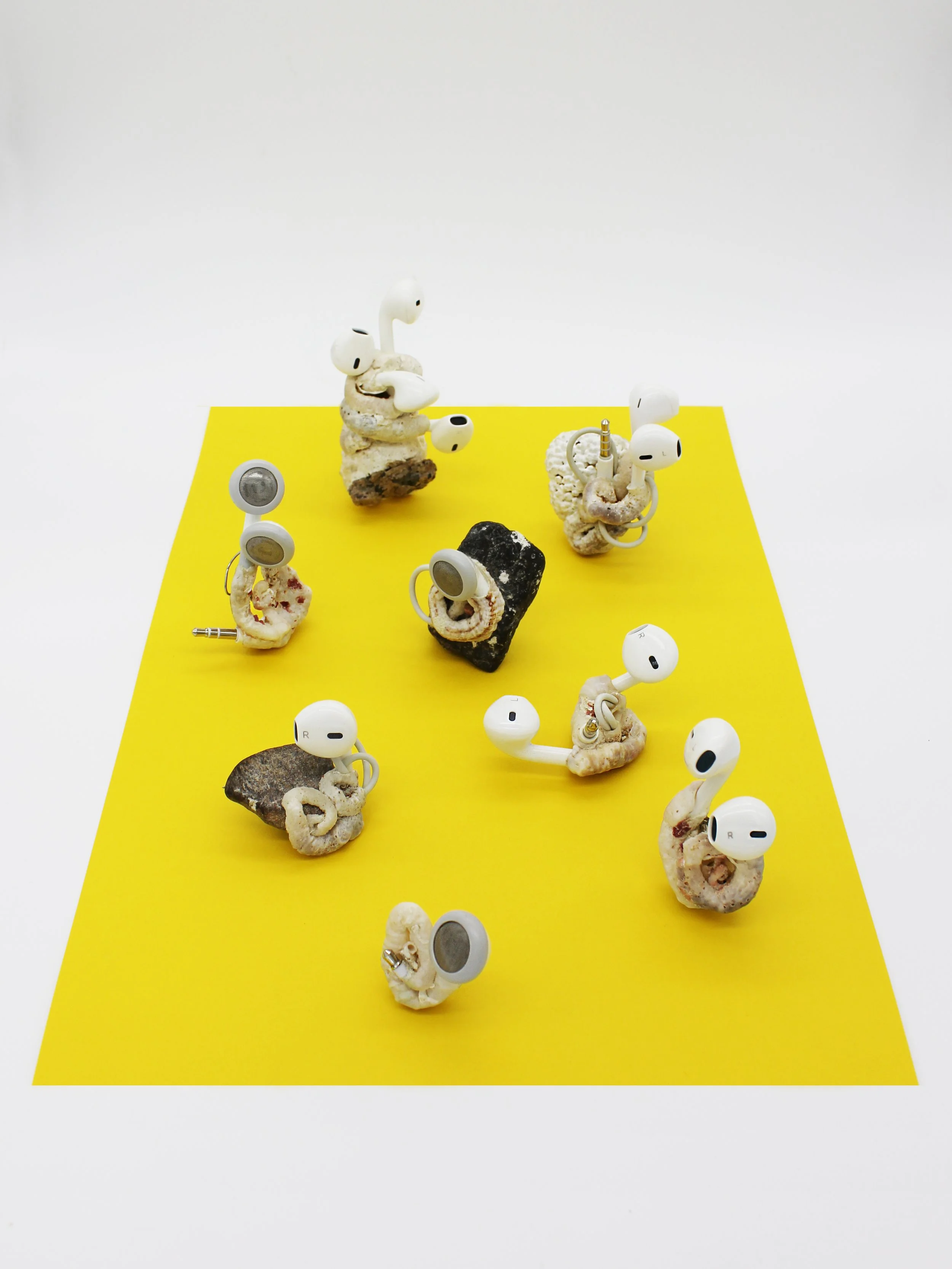 Polymorphic Appleoidæns exist in the Anthropocene- where latent objects of desire settle into a landscape of material culture undergoing reclamation into nature. The line between industry and nature dissolves as mutations give way to fragile new life forms. Such creatures emerge- forging life from vibrant matter, turning toxicity into sustenance and thereby demonstrating nature’s incredible ability to prevail. The artworks are situated intimately on the body, near in proximity to the domains they occupied in their times as consumer goods, thereby referencing the vibrant exchange resulting from countless hours spent intertwined with such technologies.