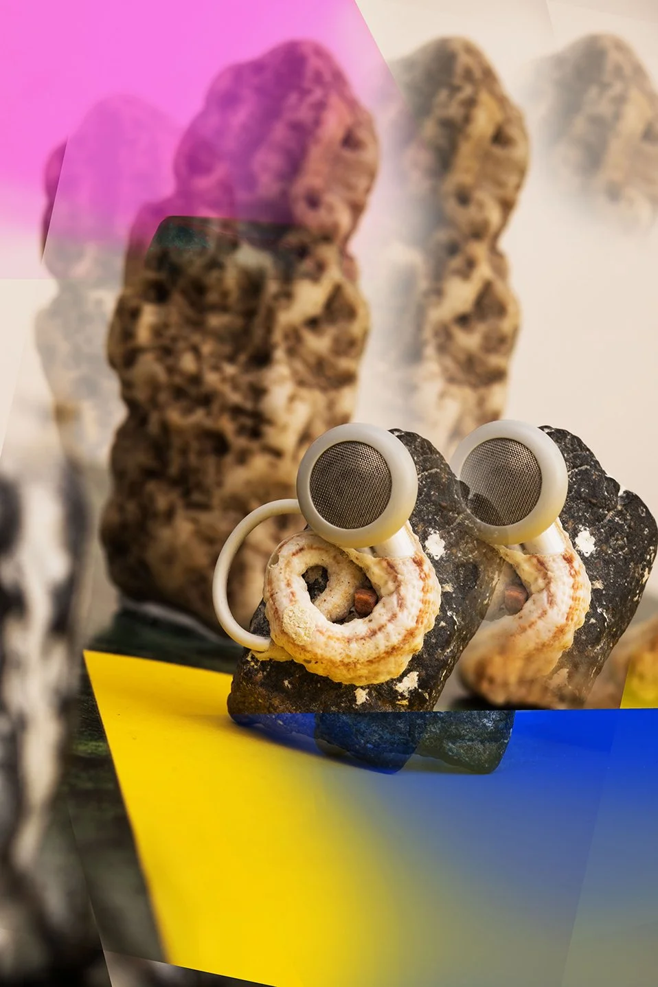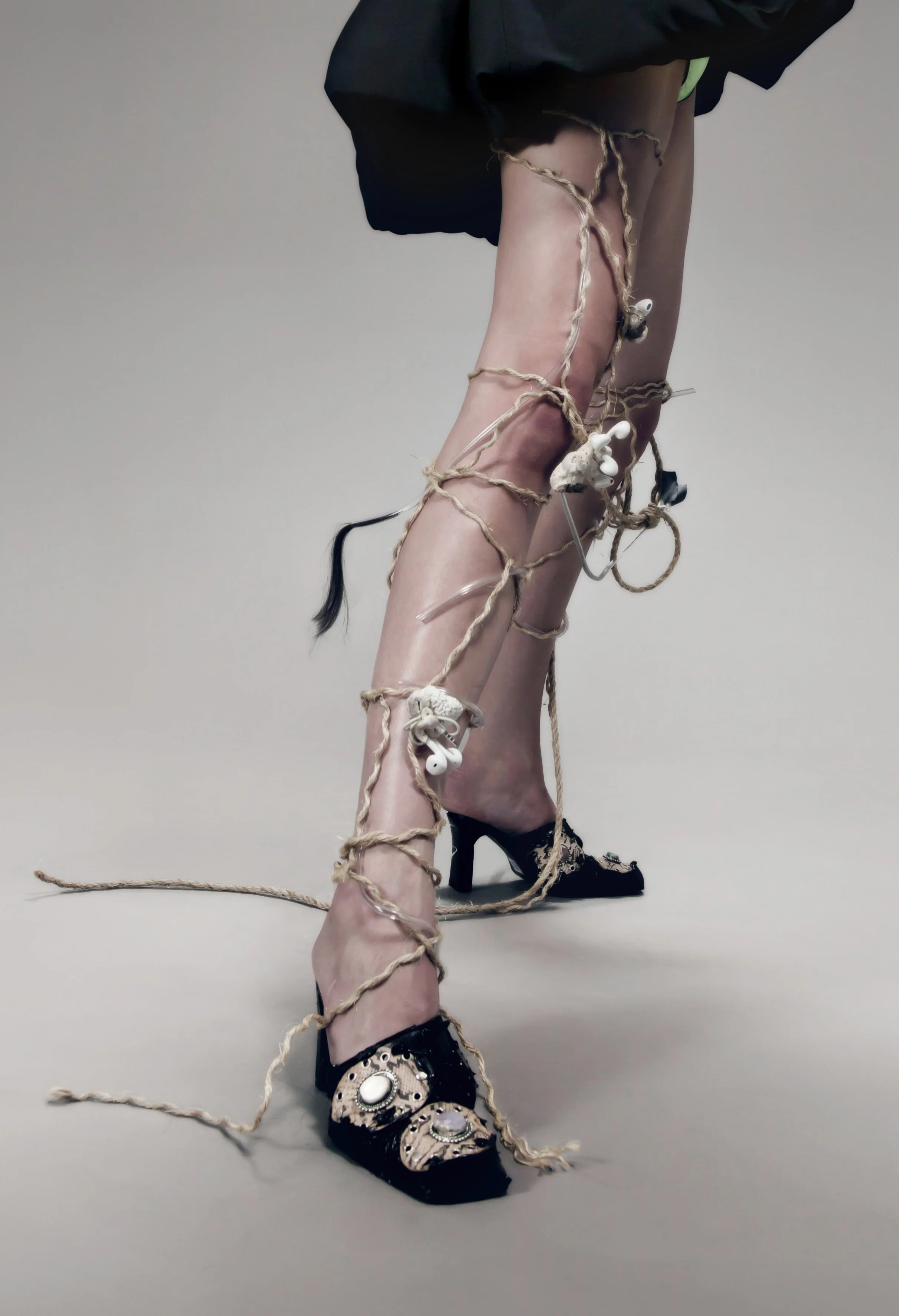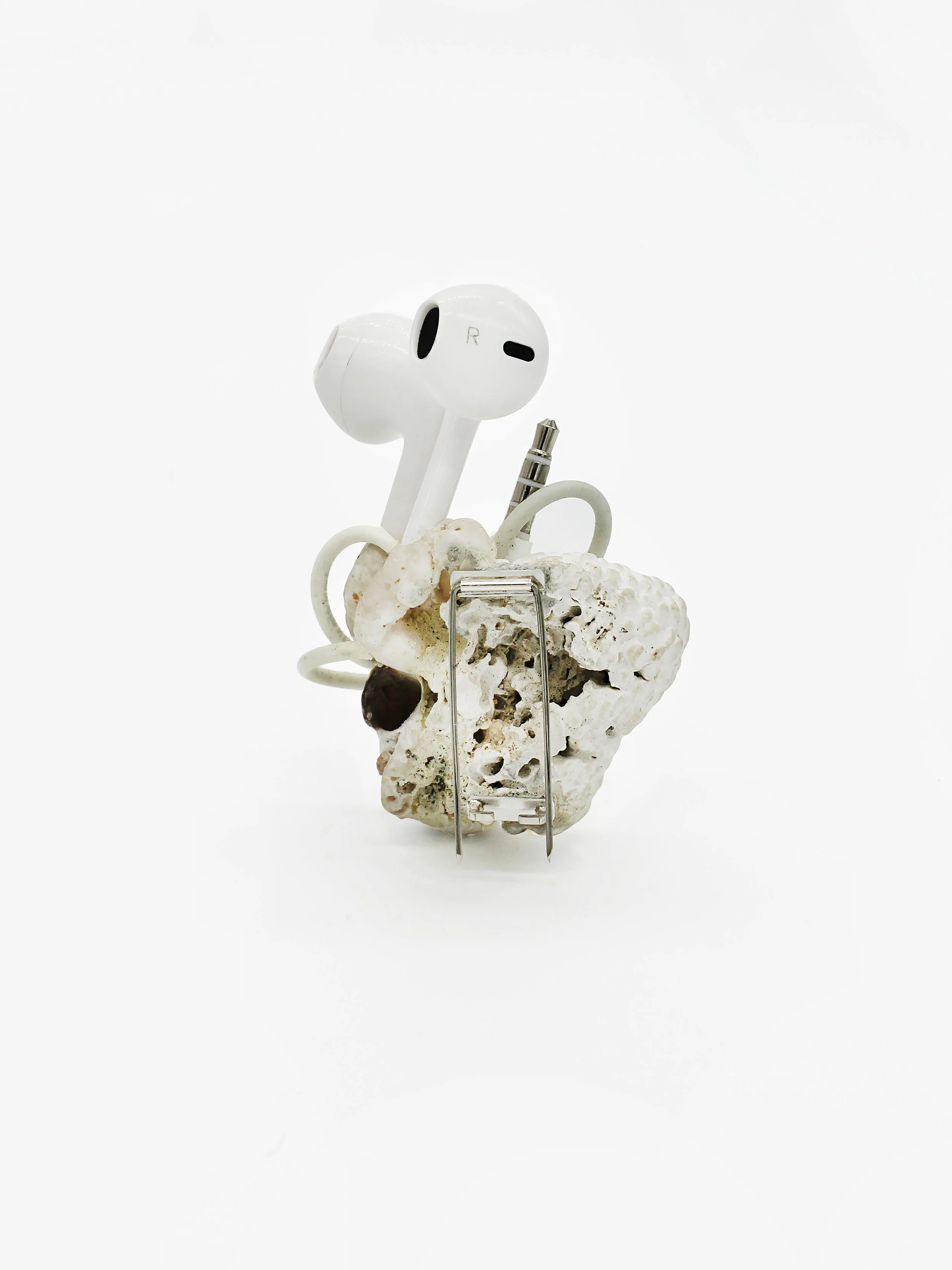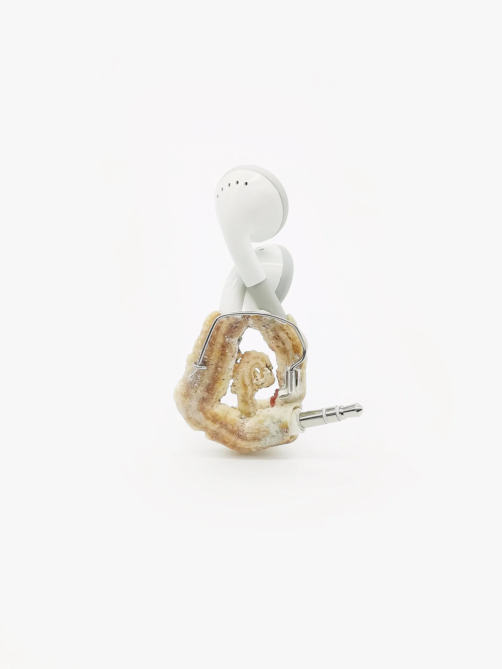 Polymorphic Appleoidæns exist in the Anthropocene- where latent objects of desire settle into a landscape of material culture undergoing reclamation into nature. The line between industry and nature dissolves as mutations give way to fragile new life forms. Such creatures emerge- forging life from vibrant matter, turning toxicity into sustenance and thereby demonstrating nature’s incredible ability to prevail. The artworks are situated intimately on the body, near in proximity to the domains they occupied in their times as consumer goods, thereby referencing the vibrant exchange resulting from countless hours spent intertwined with such technologies.